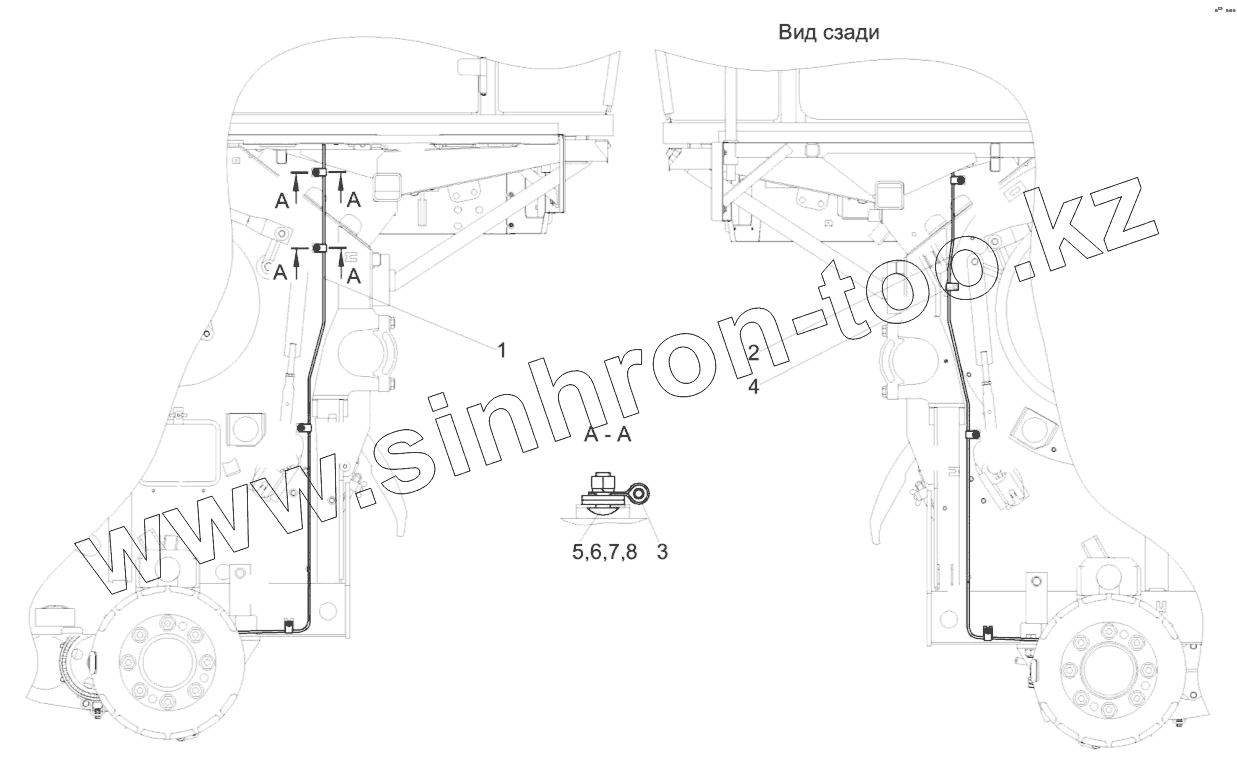 Каталог запасных частей к технике: Гомсельмаш КЗС-575. Установка тормозных трубопроводов КЗК-5-0119100