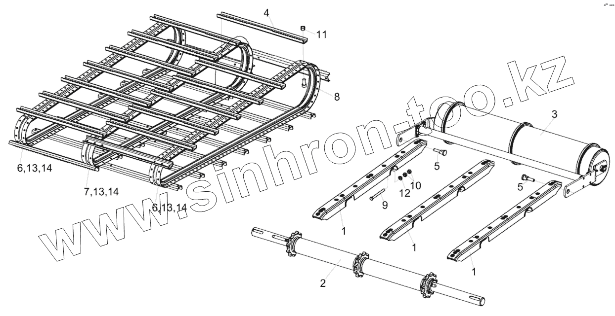 Каталог запасных частей к технике: Гомсельмаш КЗС-575. Установка транспортера КЗК-5-1807000