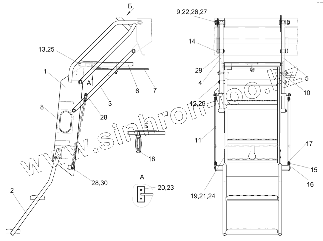 Каталог запасных частей к технике: Гомсельмаш КЗС-575. Установка трапа КЗК-7-0117000