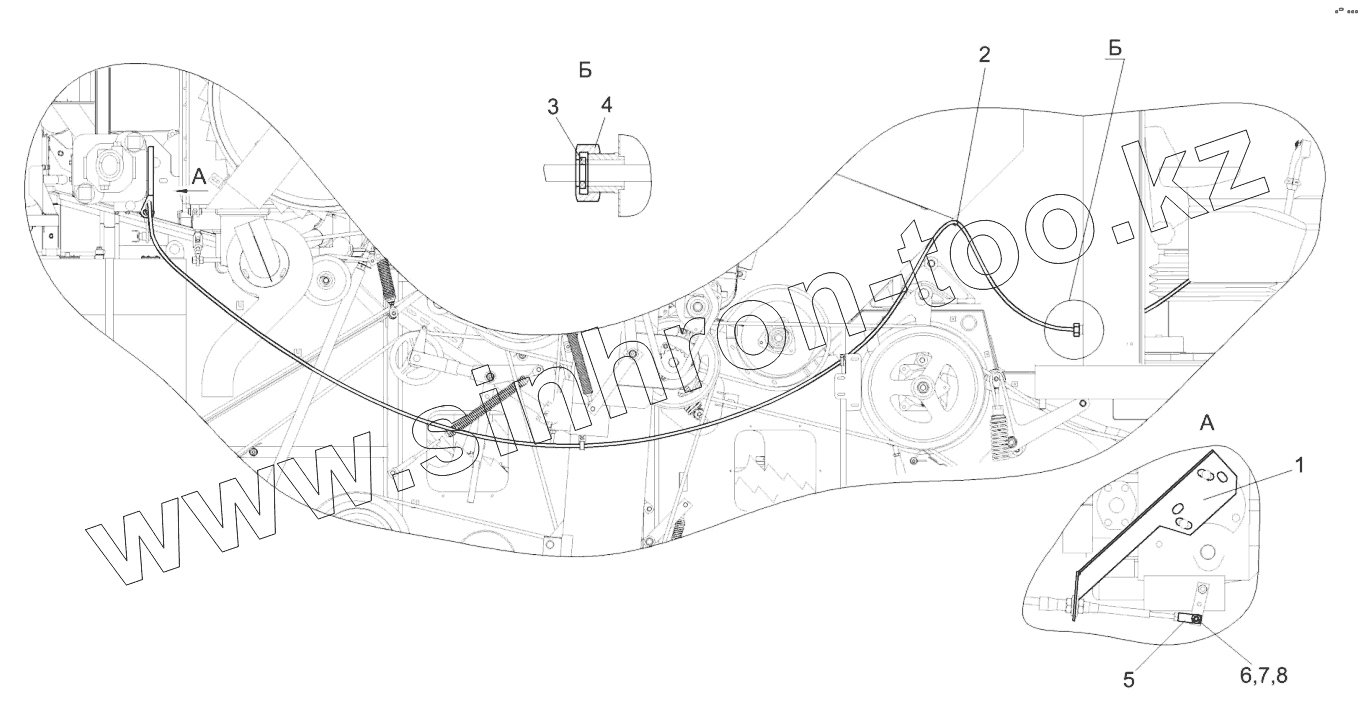 Каталог запасных частей к технике: Гомсельмаш КЗС-575. Установка троса ГСТ КЗК-8-0119150