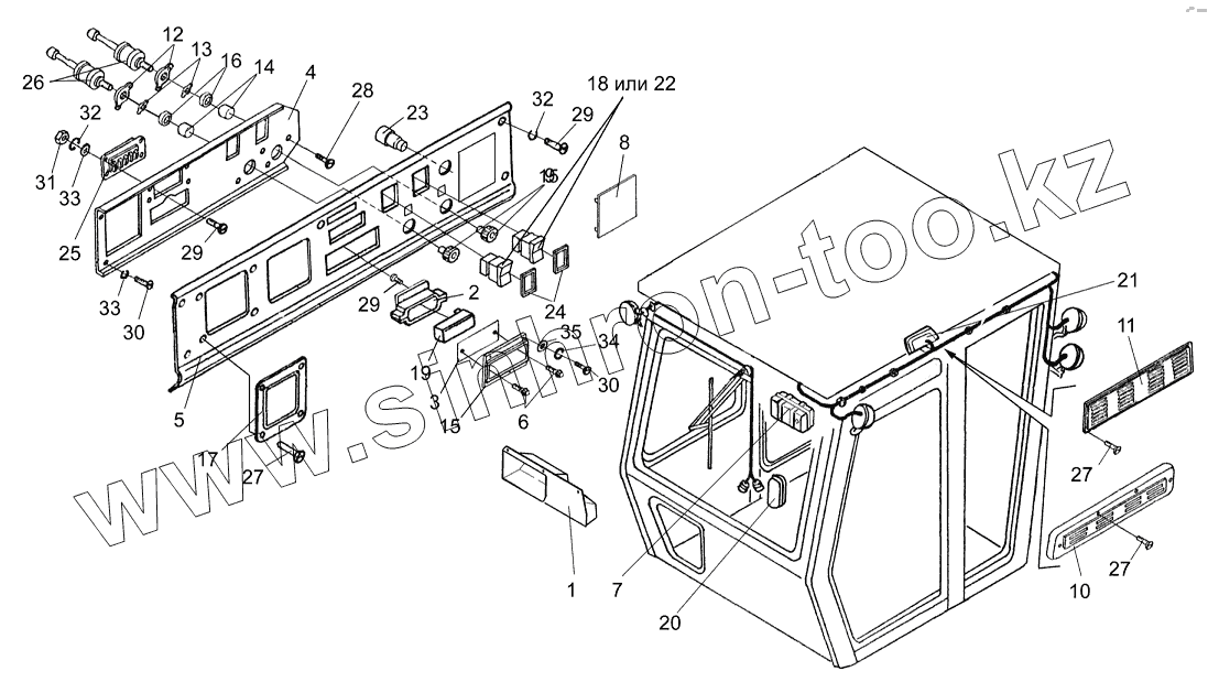 Каталог запасных частей к технике: Гомсельмаш КЗС-7. Кабина (блок выключателей, переключатель стеклоочистителя)