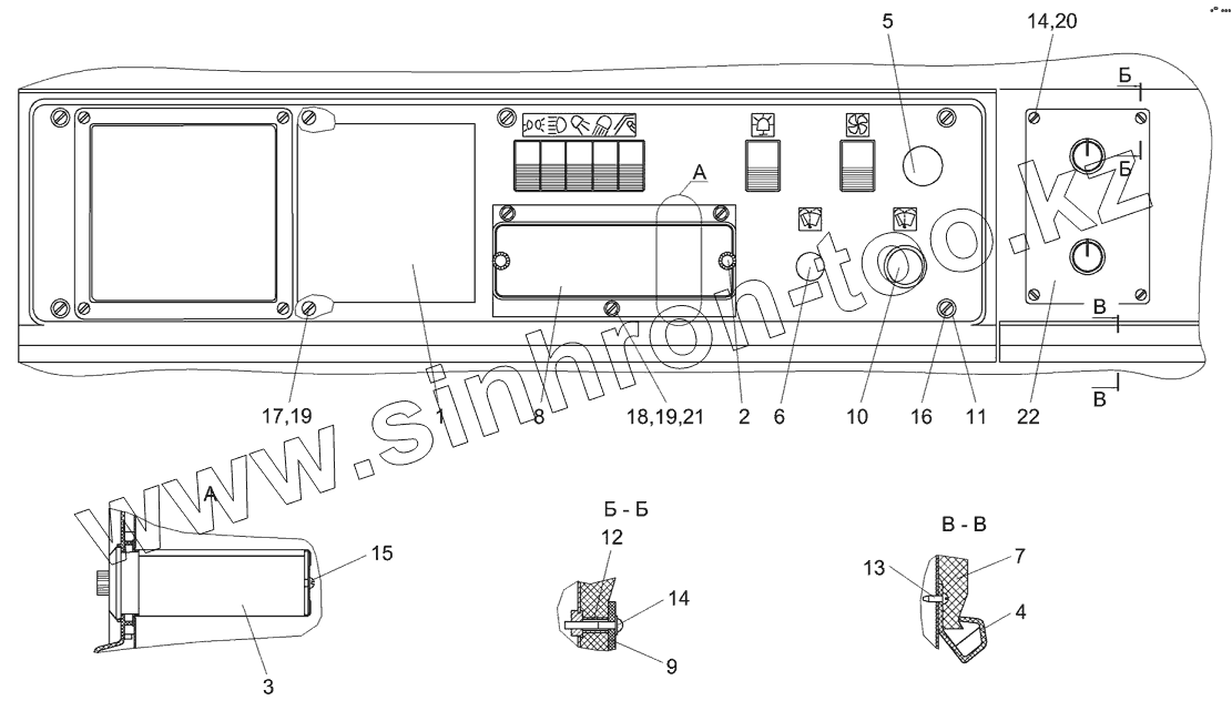 Каталог запасных частей к технике: Гомсельмаш КЗС-7. Кабина КЗК 0120000. Панель управления