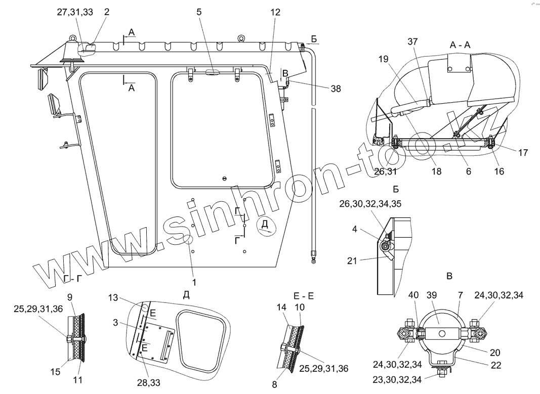 Каталог запасных частей к технике: Гомсельмаш КЗС-7. Кабина КЗК 0120000 (вид слева)