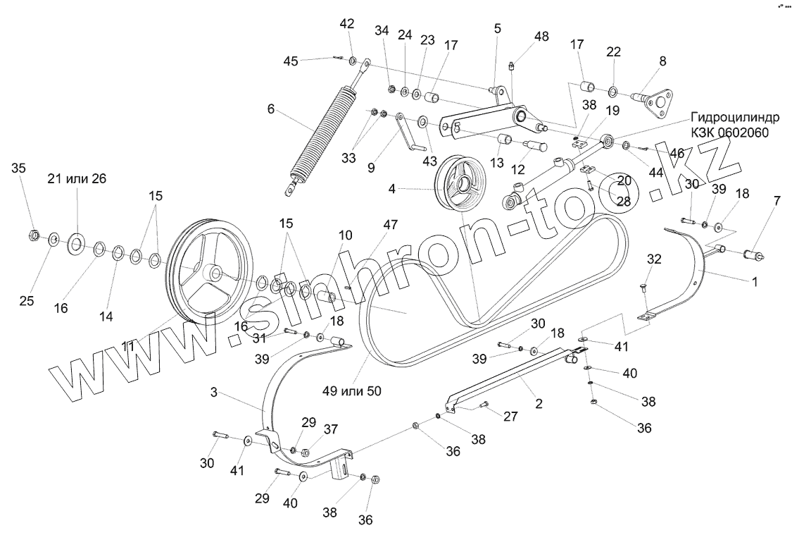 Каталог запасных частей к технике: Гомсельмаш КЗС-7. Привод горизонтального шнека КЗК-10-0221000