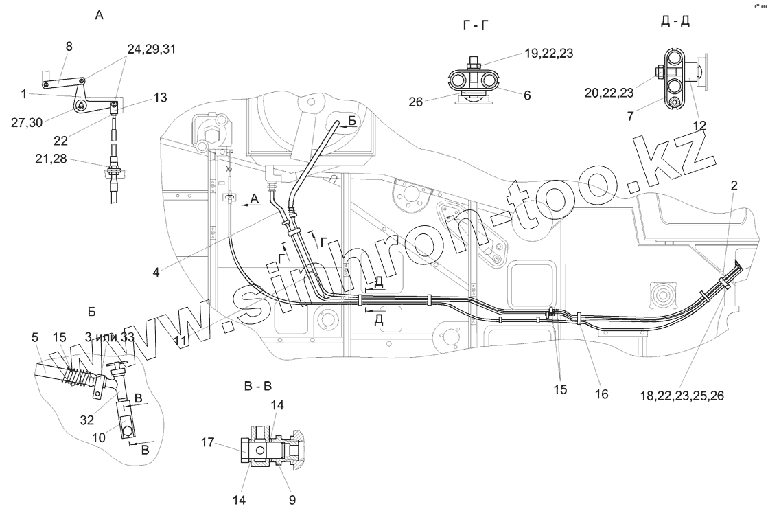 Установка тросов управления гидронасосом хода КЗК 0119640