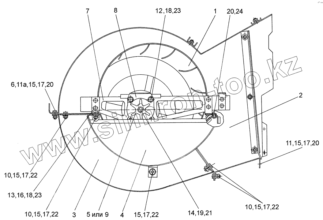 Каталог запасных частей к технике: Гомсельмаш КЗС-7. Вентилятор КЗК 0217000Б (вид слева)