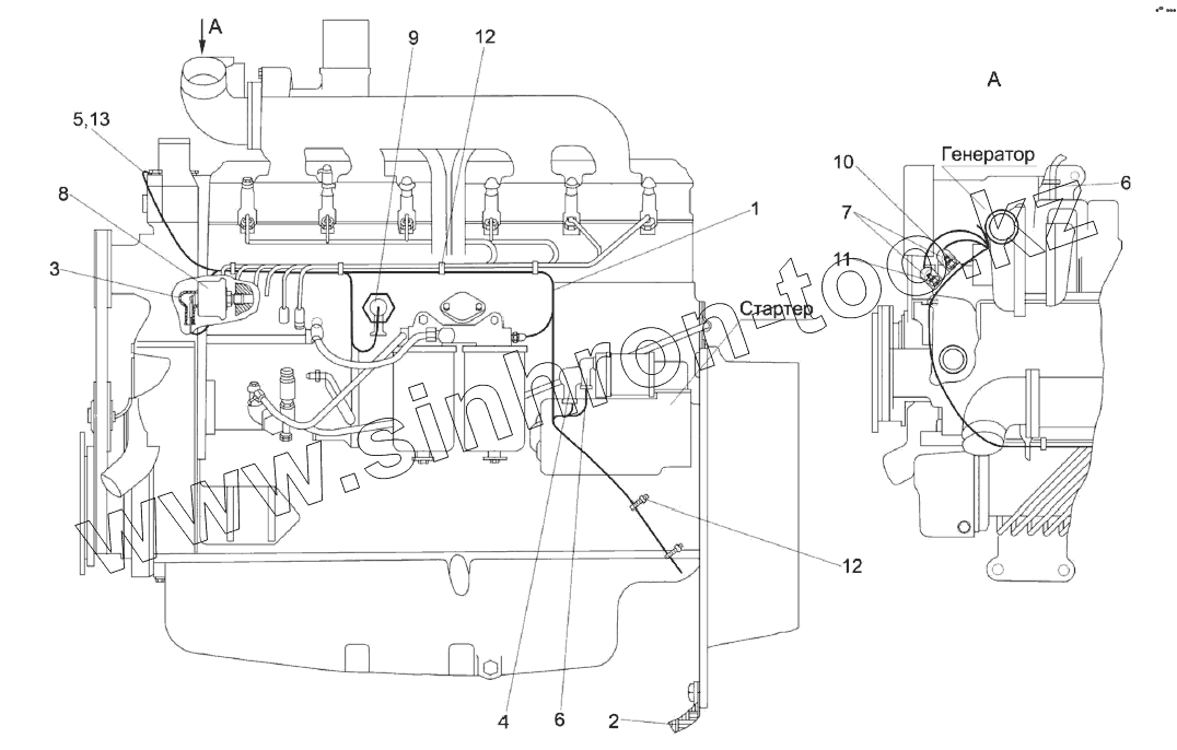 Каталог запасных частей к технике: Гомсельмаш КЗС-812. Электрооборудование двигателя КЗК 0106000А-02