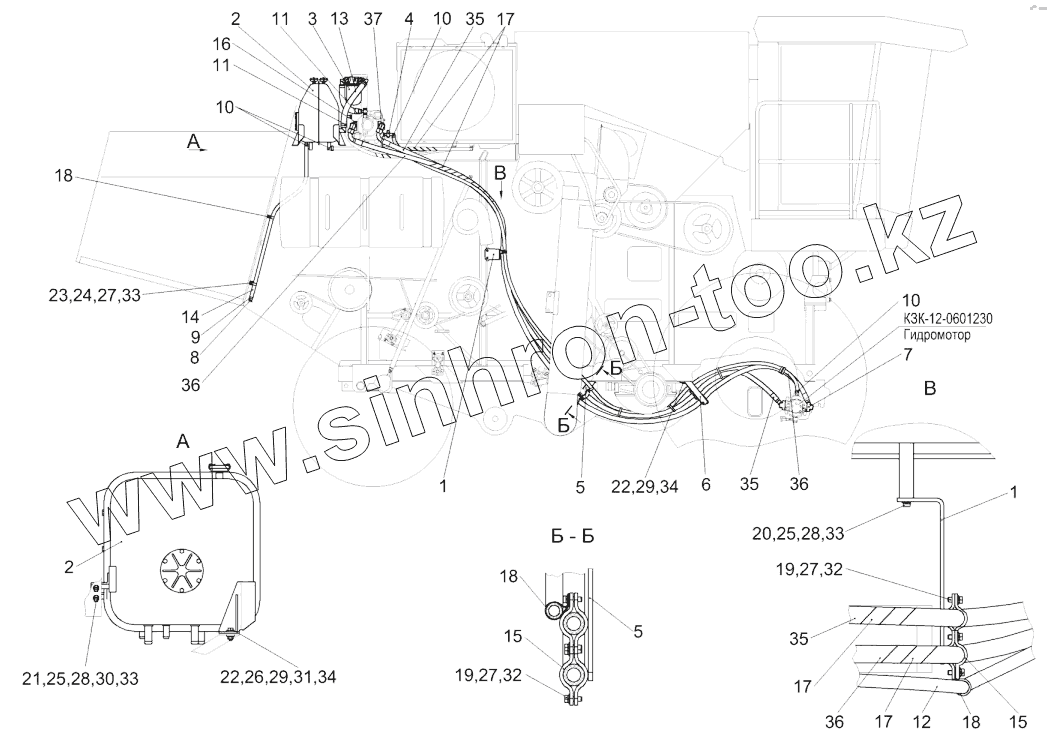 Каталог запасных частей к технике: Гомсельмаш КЗС-812. Гидросистема привода ходовой части КЗК-8А-0601000