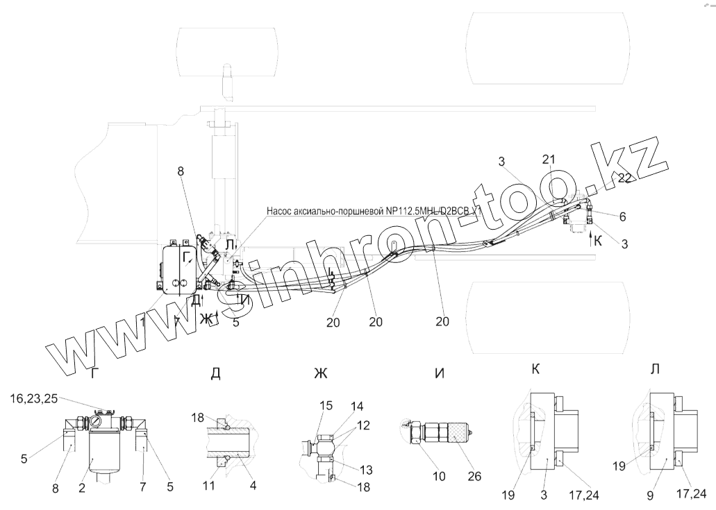 Гидросистема привода ходовой части КЗК-8А-0601000