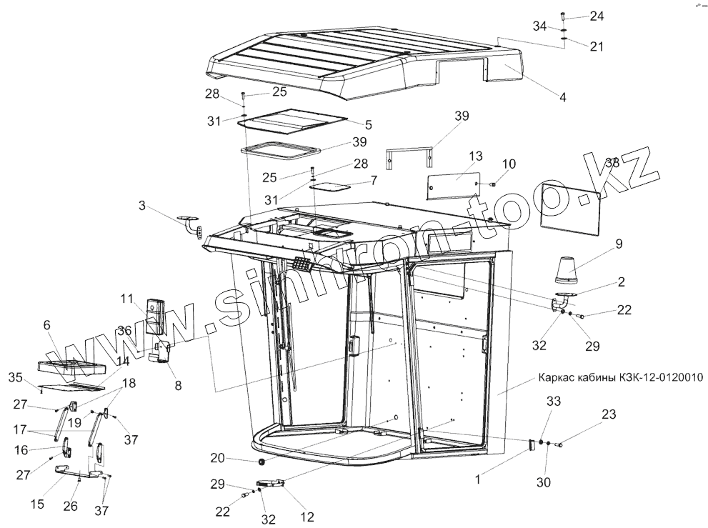 Каталог запасных частей к технике: Гомсельмаш КЗС-812. Кабина КЗК-12-0120000-01