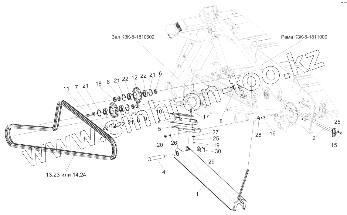 Каталог запасных частей к технике: Гомсельмаш КЗС-812. Камера наклонная. Привод транспортера