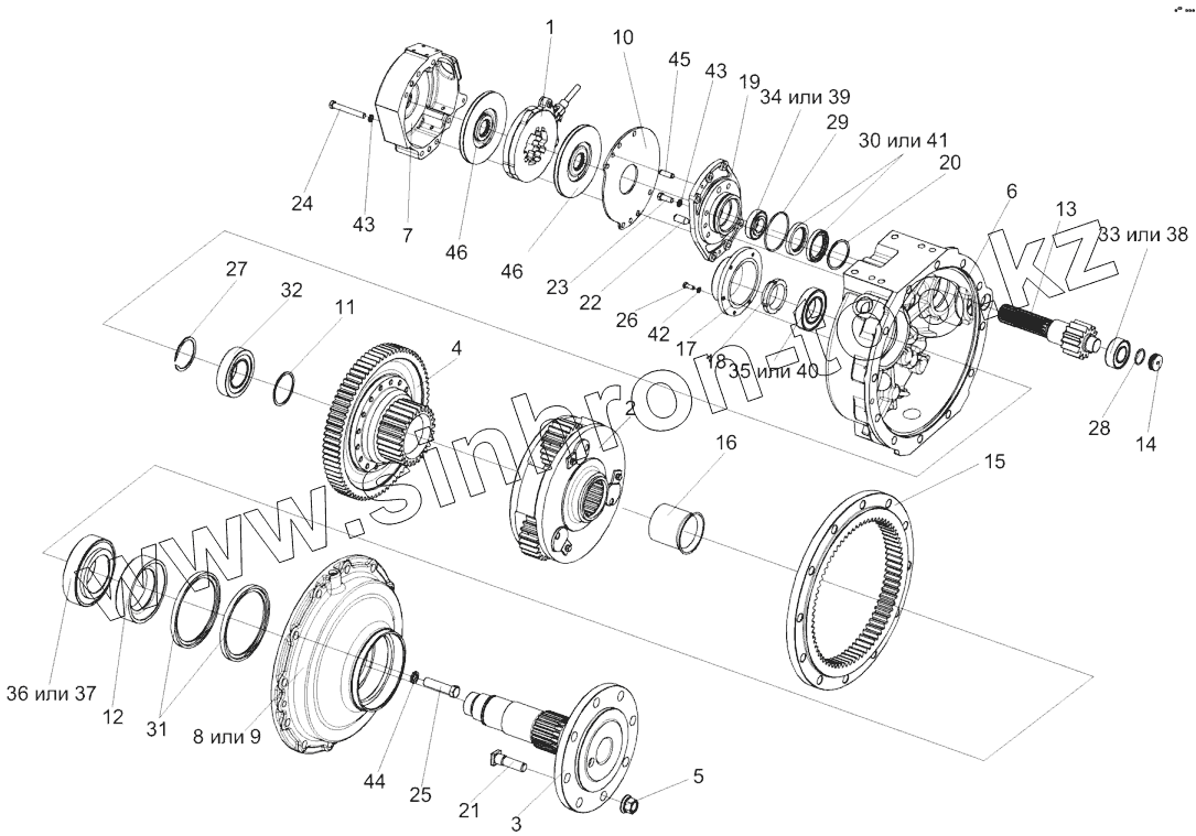 Каталог запасных частей к технике: Гомсельмаш КЗС-812. Редуктор бортовой правый УЭС 0107070А-04