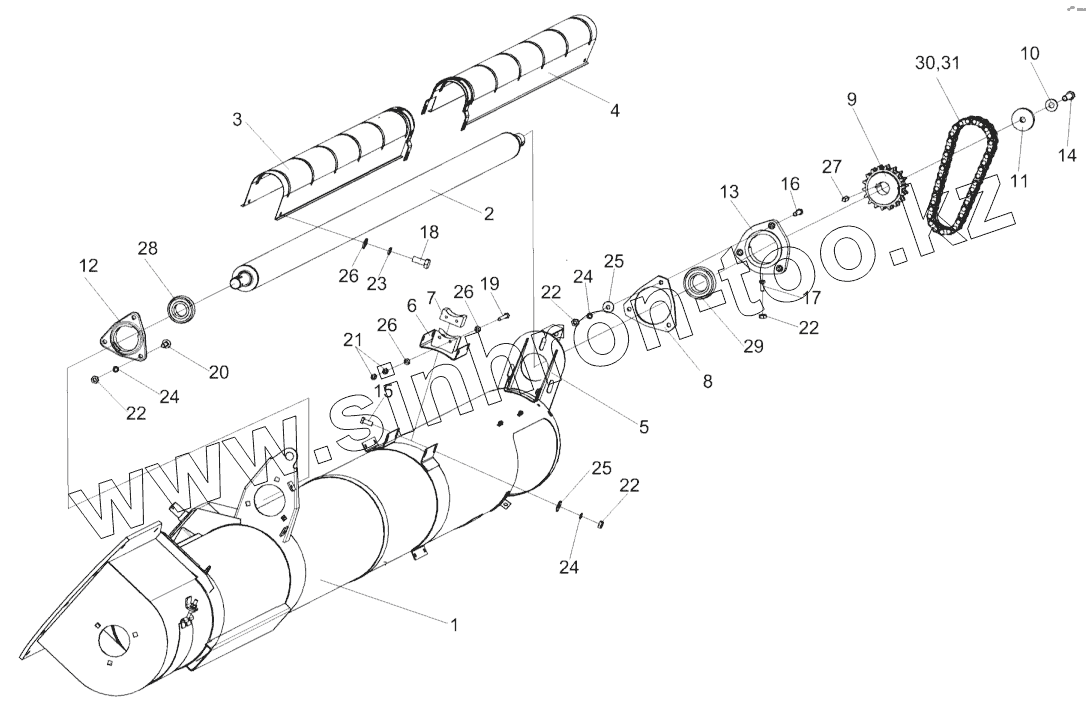 Каталог запасных частей к технике: Гомсельмаш КЗС-812. Шнек выгрузной КЗК-8-0206000-01