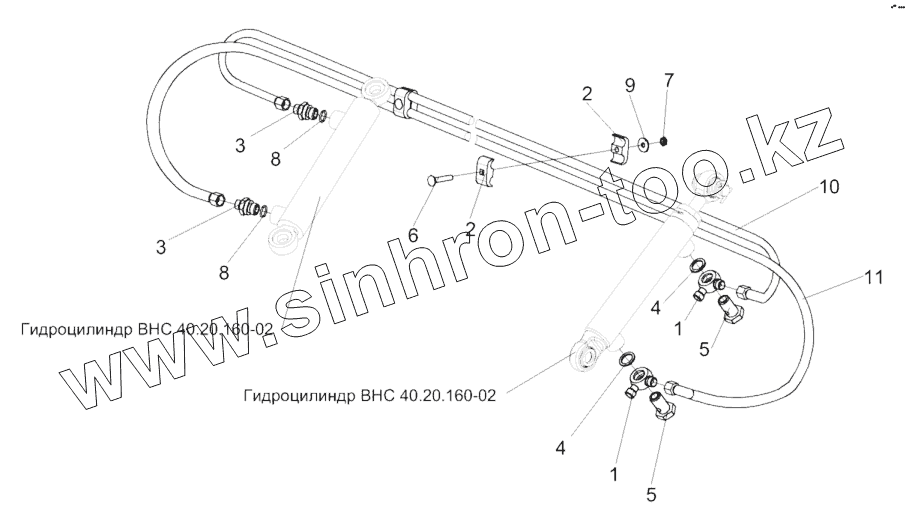 Гидросистема рулевого управления и силовых гидроцилиндров КЗК-8А-0602000 (вид справа)
