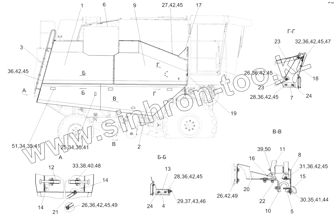 Каталог запасных частей к технике: Гомсельмаш КЗС-812. Установка капотов и ограждений КЗК-8А-0128000