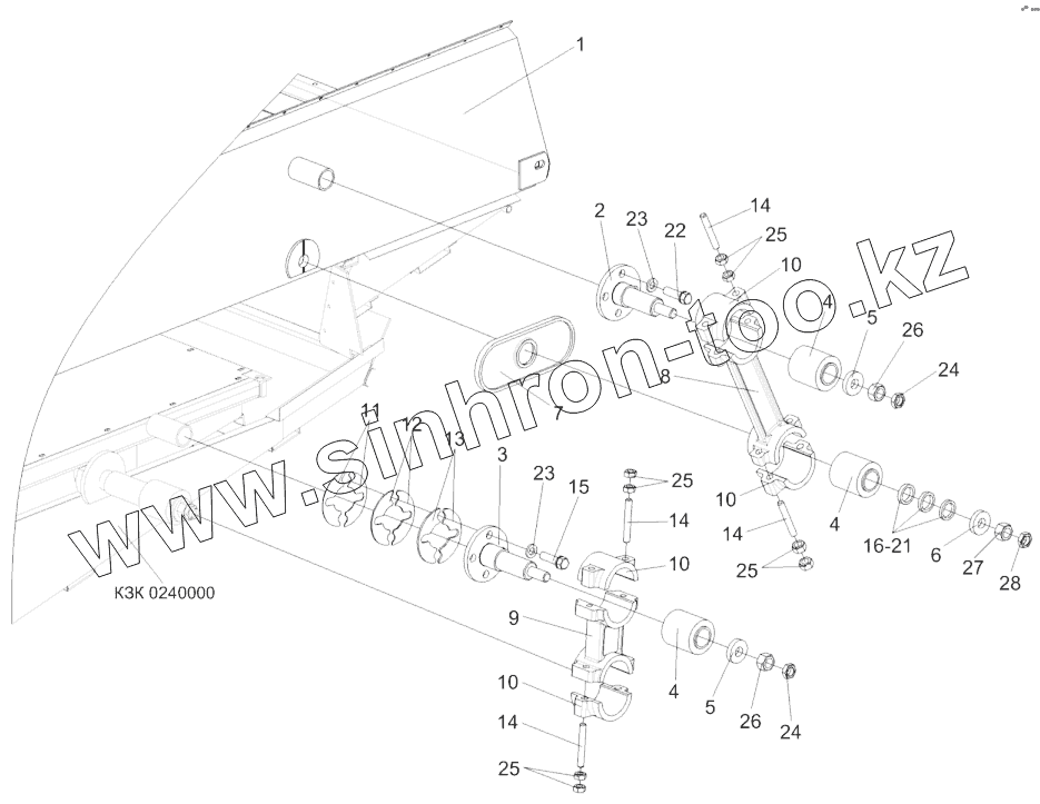 Каталог запасных частей к технике: Гомсельмаш КЗС-812. Установка привода стана решетного верхнего КЗК 0260000Б
