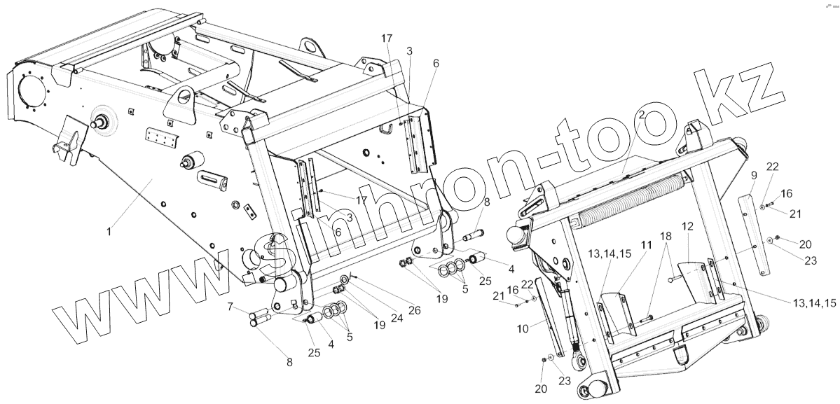 Каталог запасных частей к технике: Гомсельмаш КЗС-812. Установка рамки переходной КЗК 1780000А