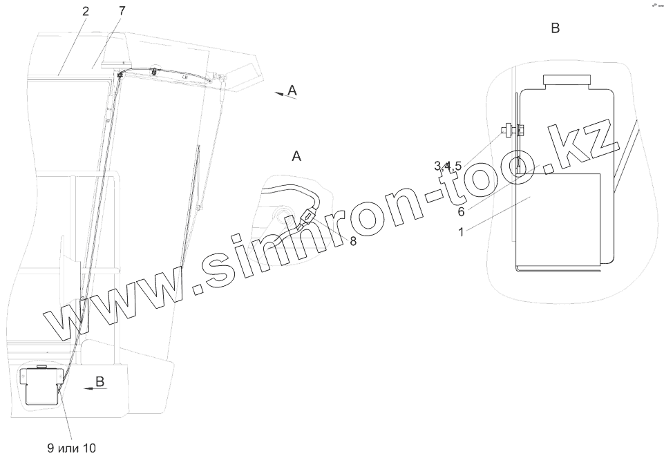 Каталог запасных частей к технике: Гомсельмаш КЗС-812. Установка стеклоомывателя КЗК-12-0120460-01