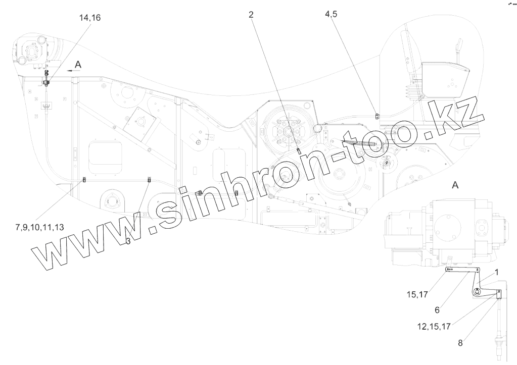 Каталог запасных частей к технике: Гомсельмаш КЗС-812. Установка тросов управления гидронасосом хода КЗК-7-0119150