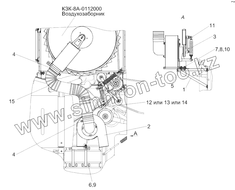 Каталог запасных частей к технике: Гомсельмаш КЗС-812. Установка вентилятора КЗК-8А-0112100