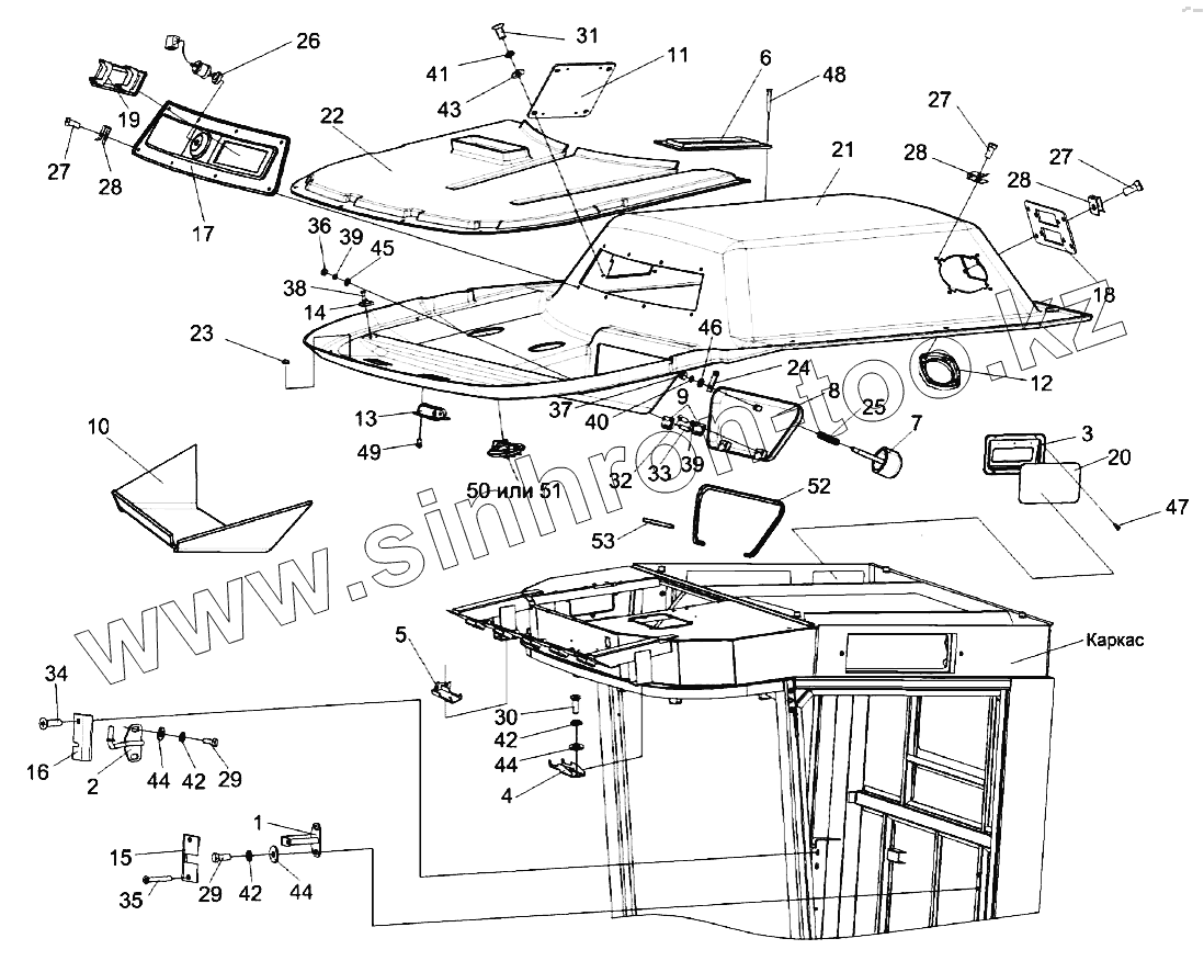 Каталог запасных частей к технике: Гомсельмаш KЗС-812. Кабина КЗК-12-0120000-01