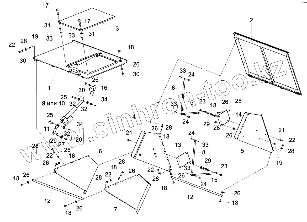 Каталог запасных частей к технике: Гомсельмаш KЗС-812. Крыша бункера КЗК-7-0204000