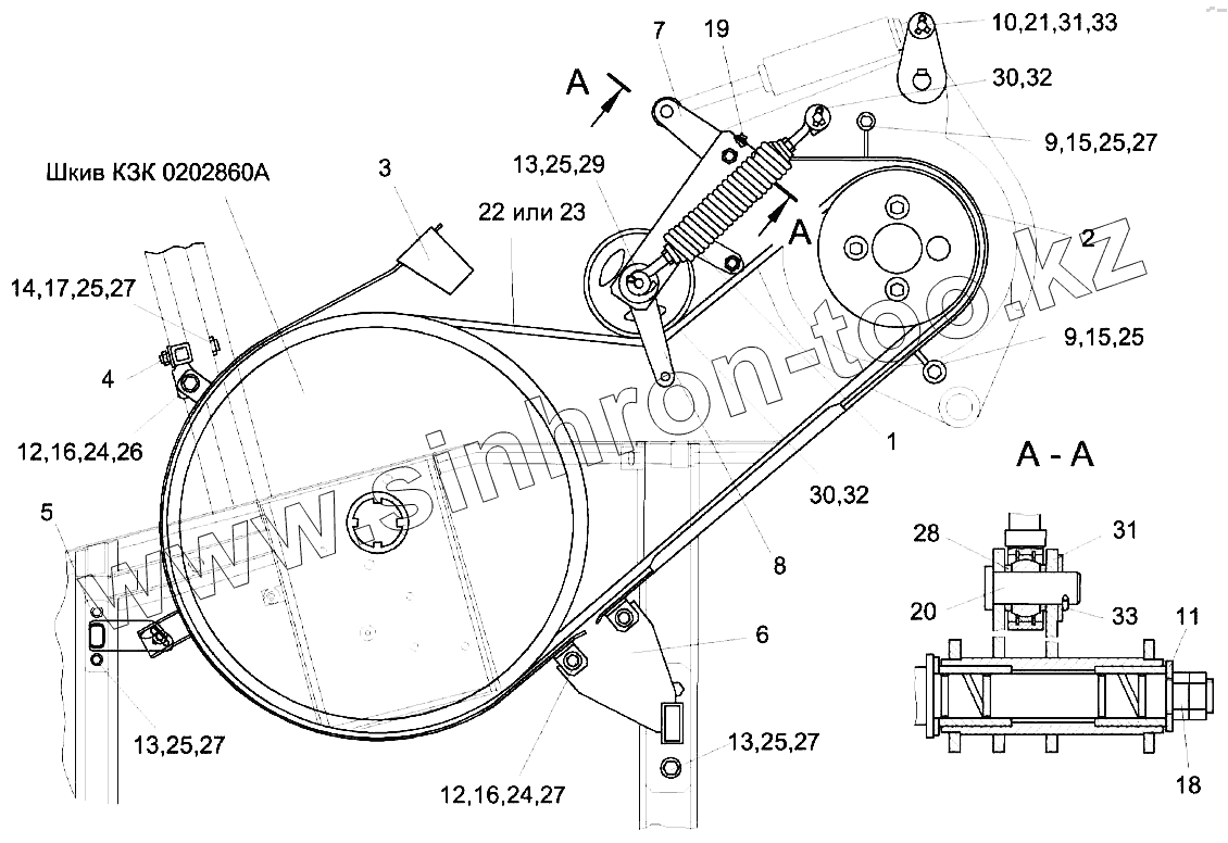 Каталог запасных частей к технике: Гомсельмаш KЗС-812. Привод главного контрпривода КЗК 0220000А