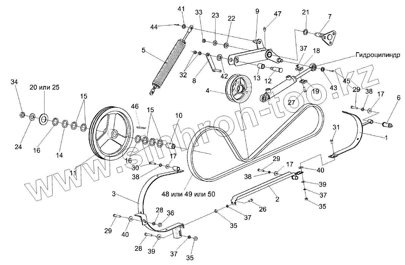 Каталог запасных частей к технике: Гомсельмаш KЗС-812. Привод горизонтального шнека КЗК-10-0221000