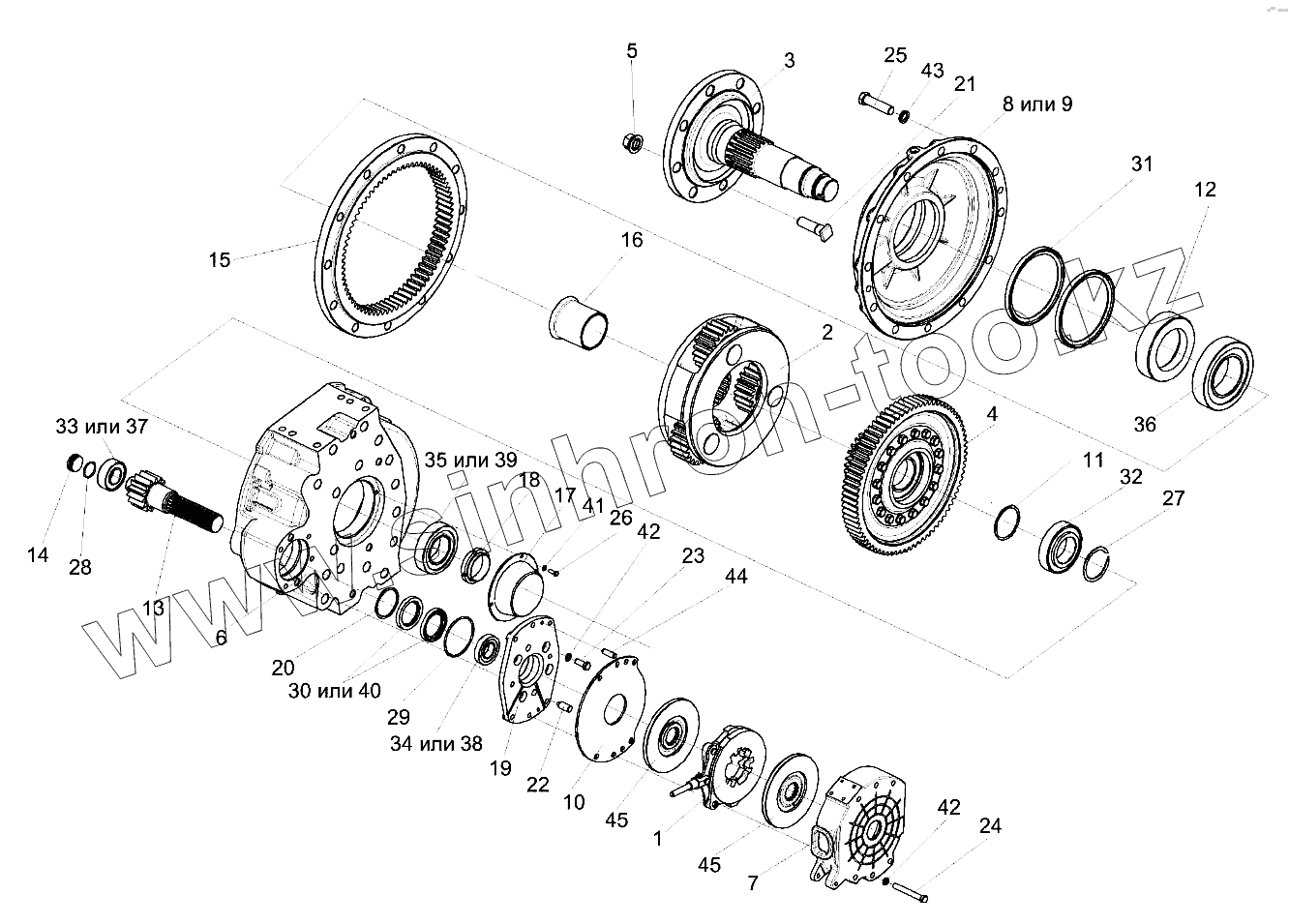 Каталог запасных частей к технике: Гомсельмаш KЗС-812. Редуктор бортовой левый УЭС 0107150-03