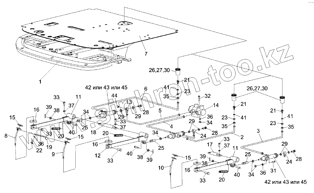 Каталог запасных частей к технике: Гомсельмаш KЗС-812. Рычаги и трубопроводы площадки управления