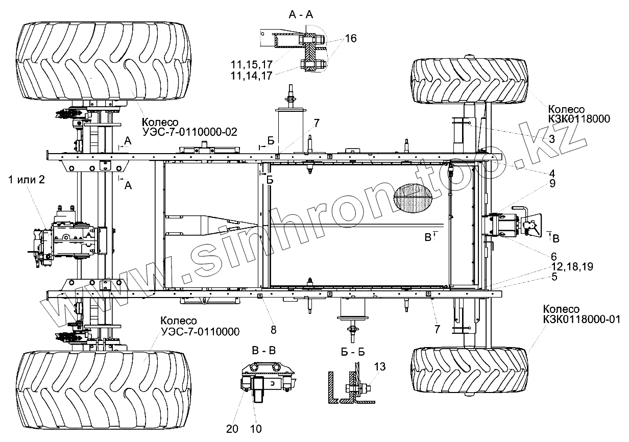 Каталог запасных частей к технике: Гомсельмаш KЗС-812. Шасси КЗК-8А-0111000