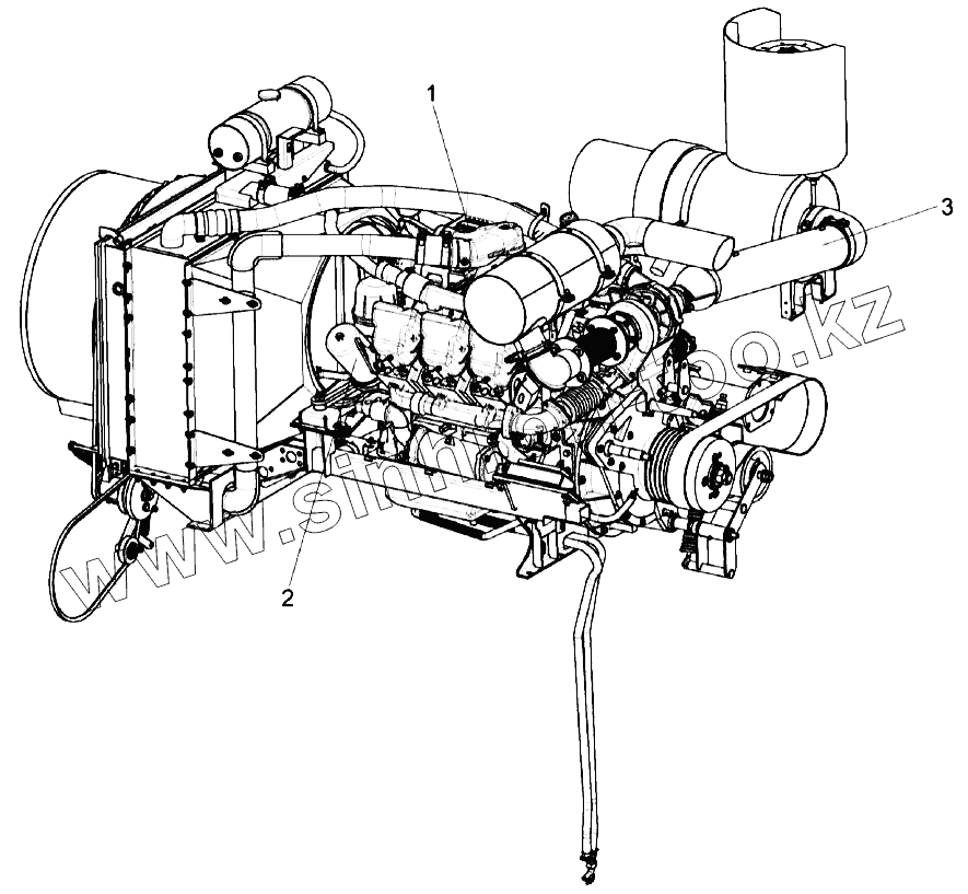 Каталог запасных частей к технике: Гомсельмаш KЗС-812. Установка двигателя КЗК-8К-0106000
