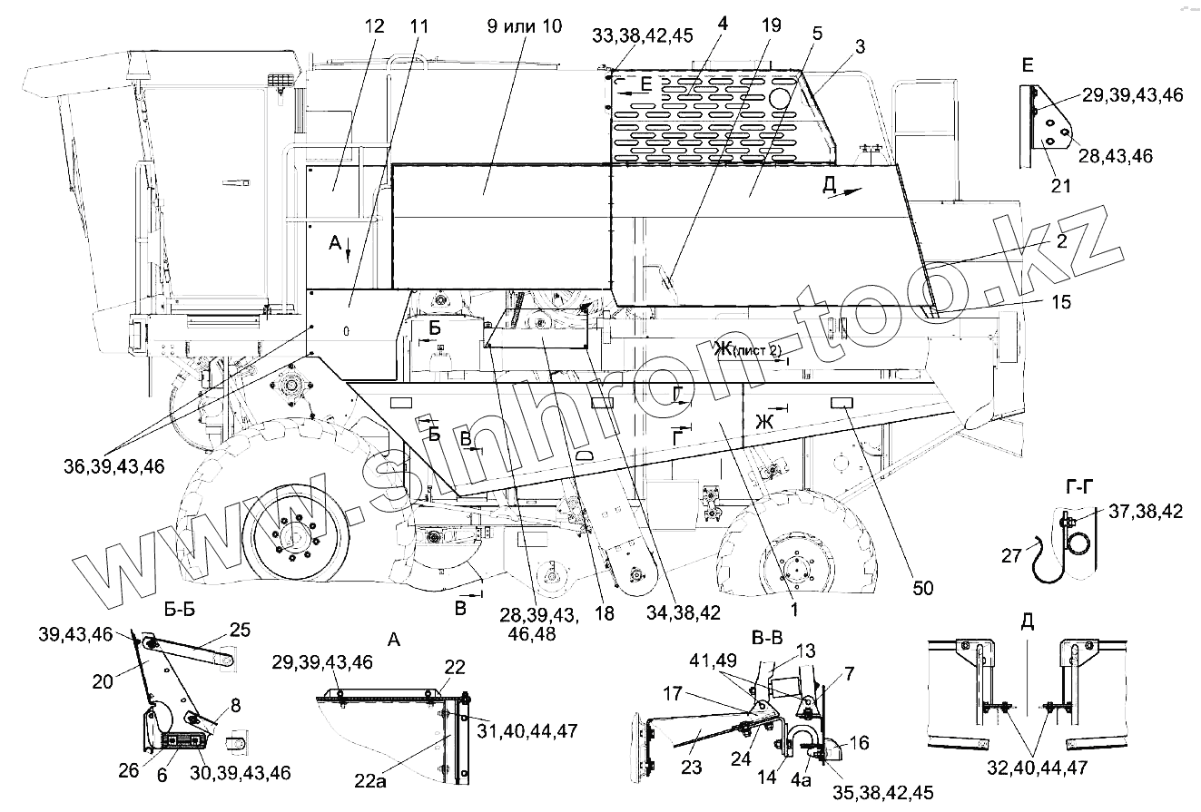 Каталог запасных частей к технике: Гомсельмаш KЗС-812. Установка капотов и ограждений КЗК-8А-0128000-03