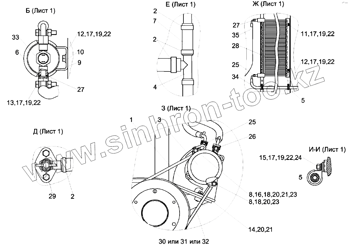 Каталог запасных частей к технике: Гомсельмаш KЗС-812. Установка компрессора КЗК-7-0113030-02