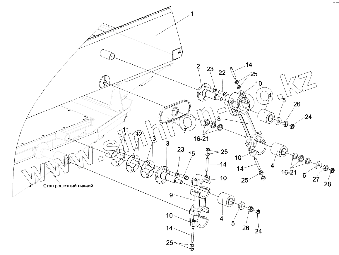 Каталог запасных частей к технике: Гомсельмаш KЗС-812. Установка привода стана решетного верхнего КЗК 0260000Б-01
