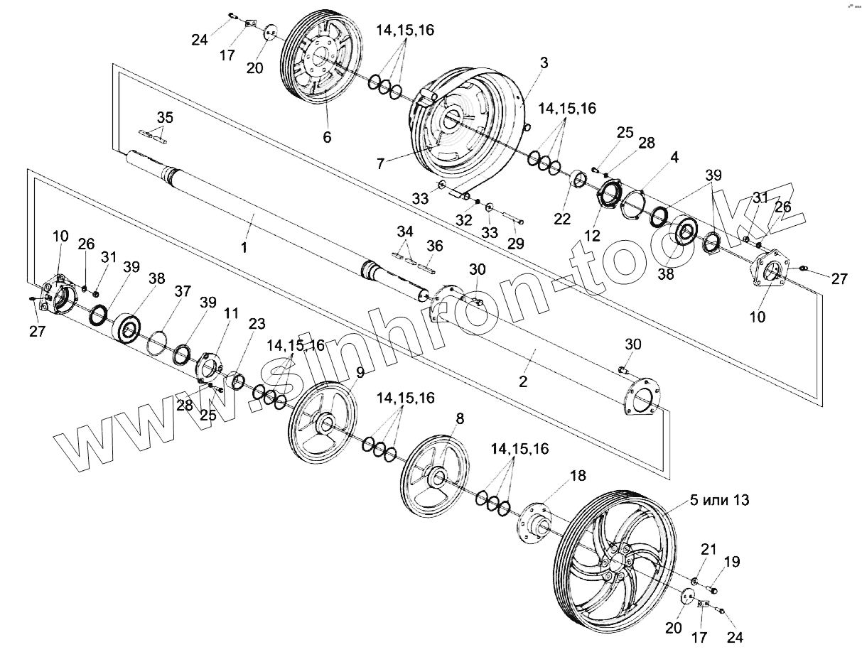 Каталог запасных частей к технике: Гомсельмаш KЗС-812. Установка шкивов КЗК 0202860А и КЗК 0202103Б