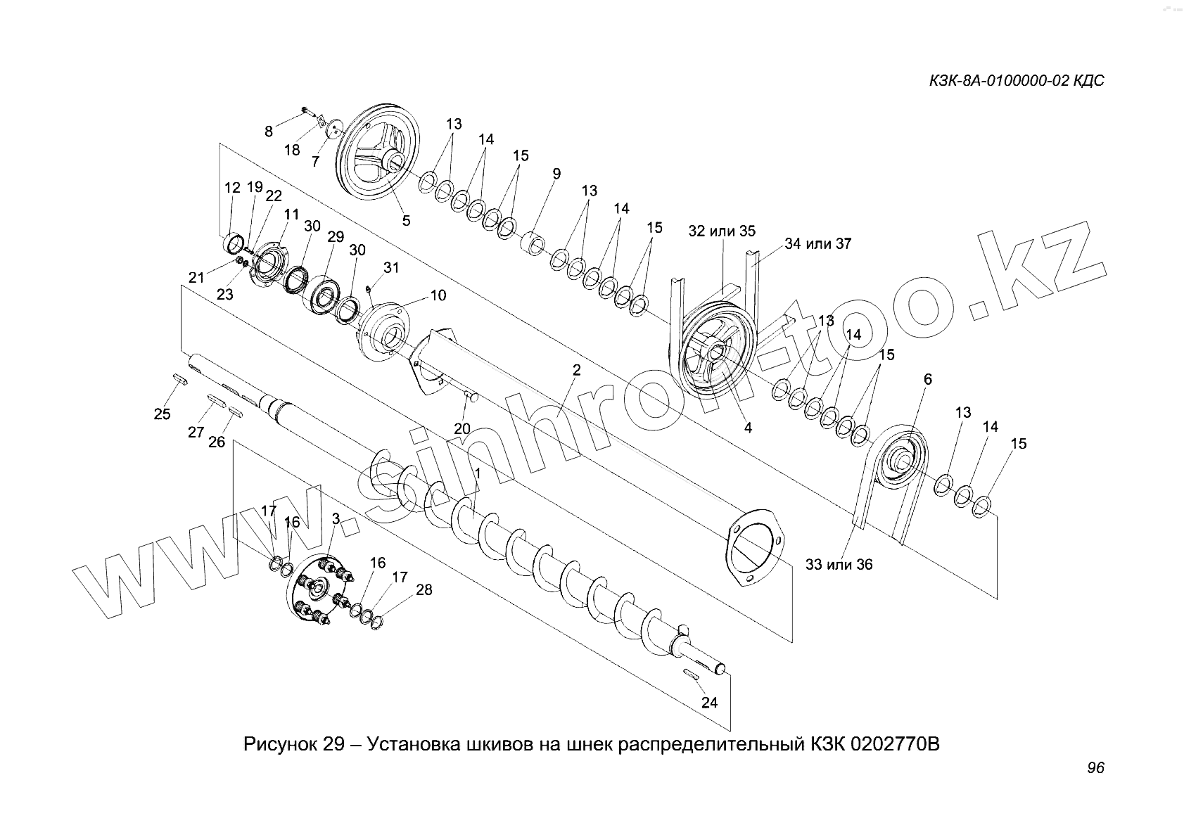 Каталог запасных частей к технике: Гомсельмаш KЗС-812. Установка шкивов на шнек распределительный КЗК 0202770В