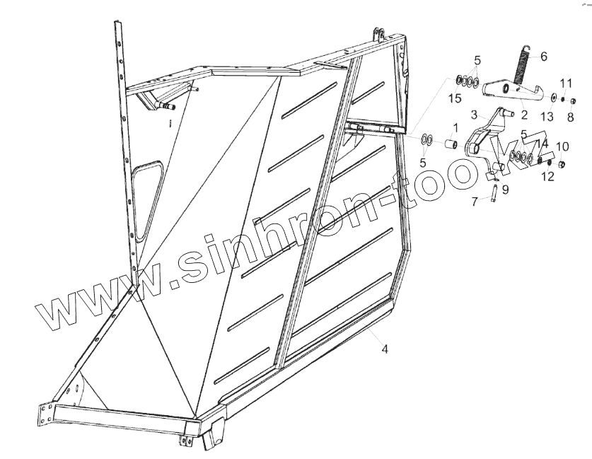 Каталог запасных частей к технике: Гомсельмаш KЗС-812. Боковина левая КЗК-8К-2-0400070