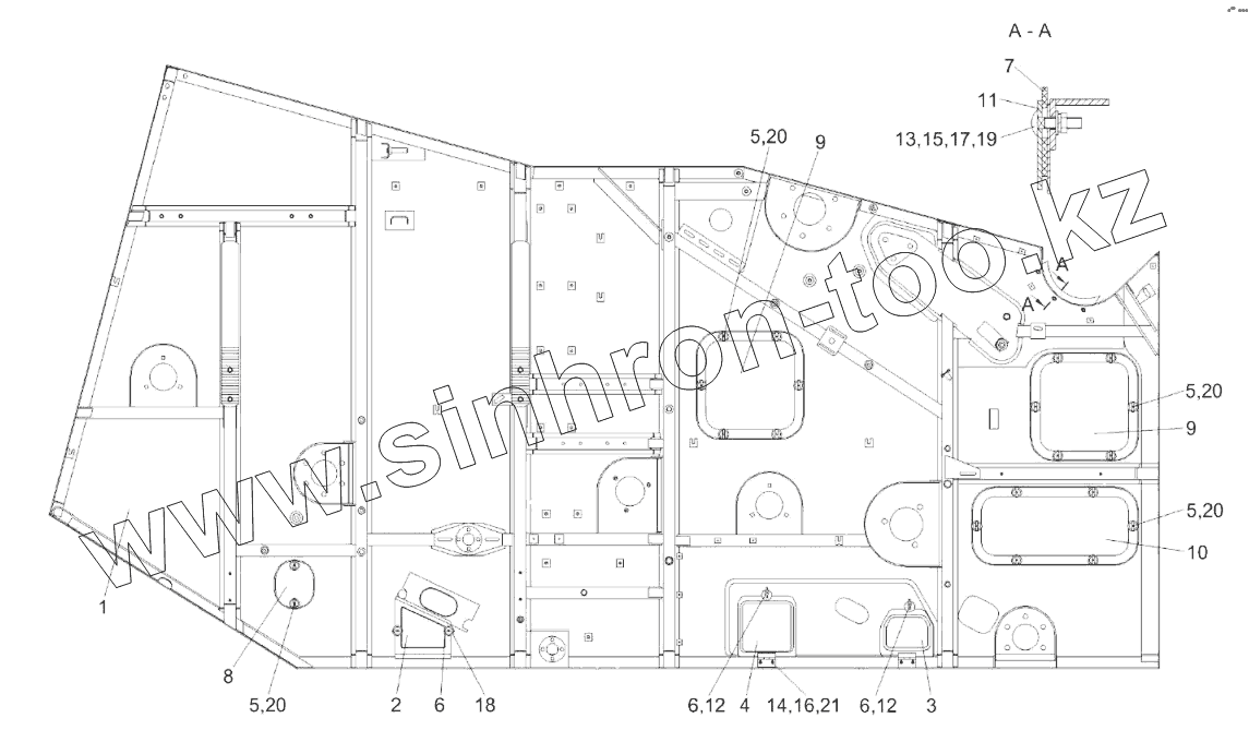 Каталог запасных частей к технике: Гомсельмаш KЗС-812. Боковина правая КЗК-8К-0202060