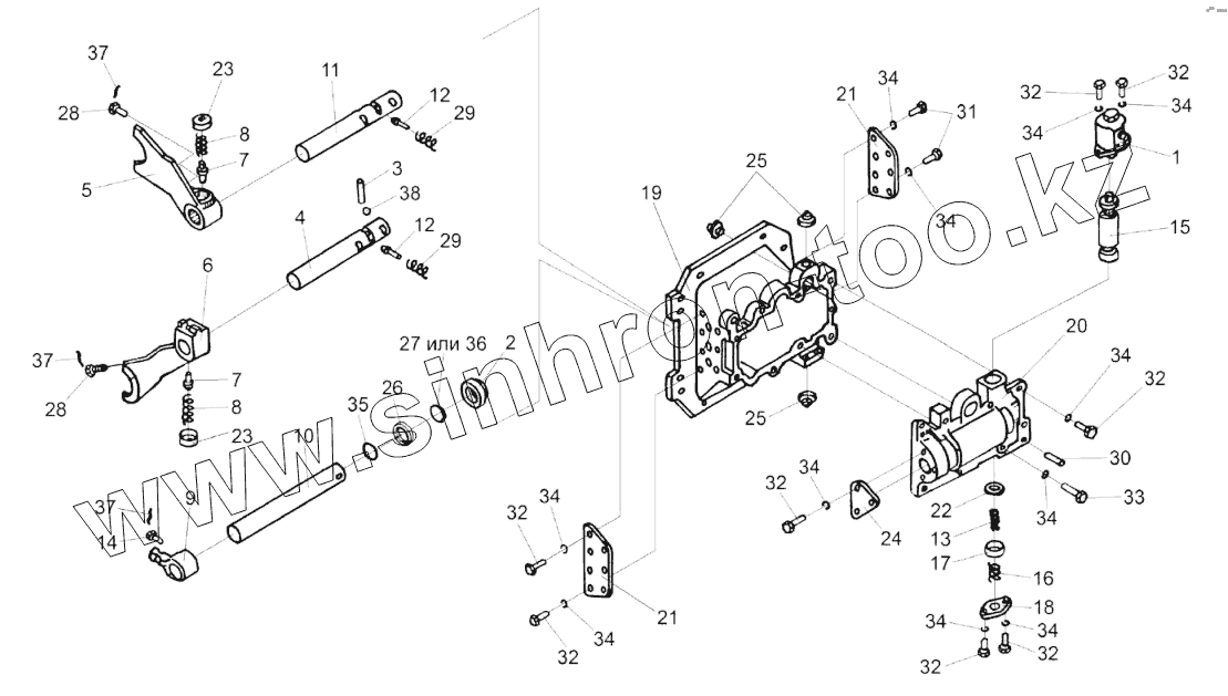 Каталог запасных частей к технике: Гомсельмаш KЗС-812. Механизм переключения диапазонов 3518020-46160