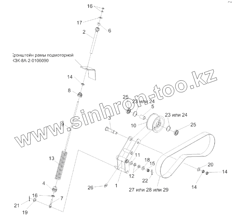 Каталог запасных частей к технике: Гомсельмаш KЗС-812. Привод гидронасоса КЗК-8А-2-0222500