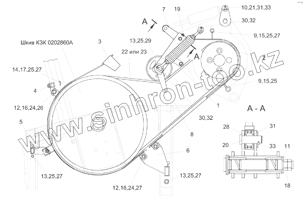 Каталог запасных частей к технике: Гомсельмаш KЗС-812. Привод главного контрпривода КЗК 0220000А