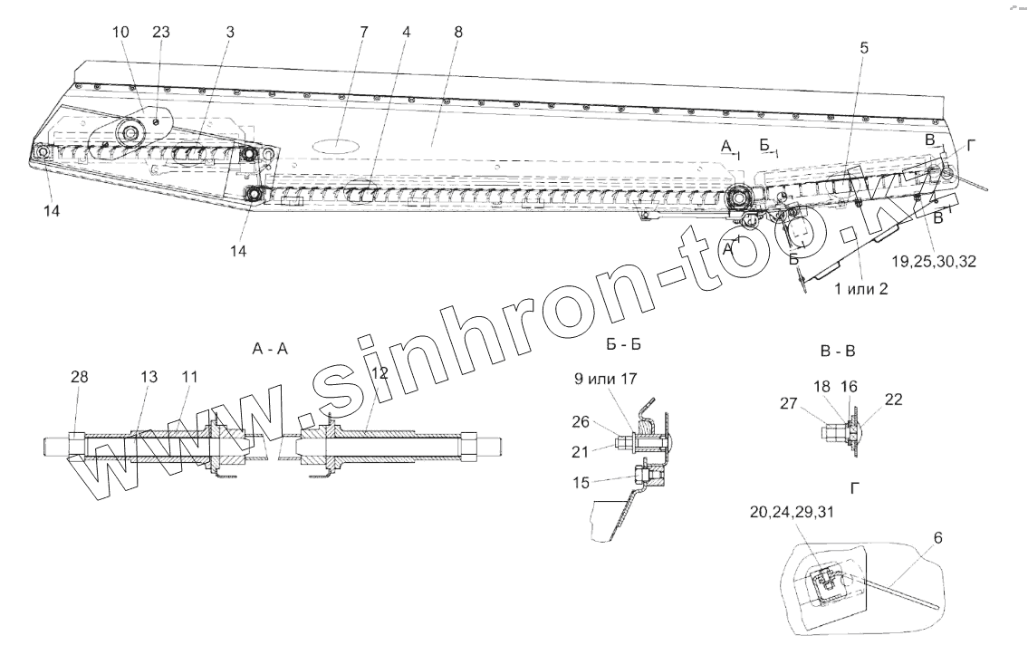 Каталог запасных частей к технике: Гомсельмаш KЗС-812. Стан решетный верхний КЗК 0260000Б-01