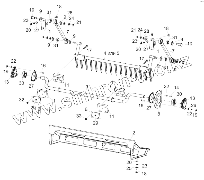 Каталог запасных частей к технике: Гомсельмаш KЗС-812. Установка половонабивателя КЗК-8К-0400010
