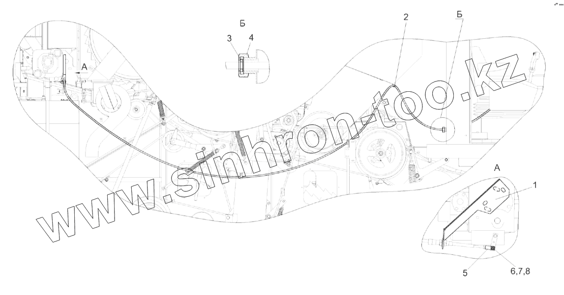 Каталог запасных частей к технике: Гомсельмаш KЗС-812. Установка троса ГСТ КЗК-8-0119150