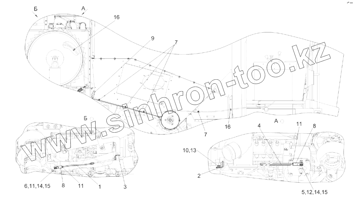 Каталог запасных частей к технике: Гомсельмаш KЗС-812. Установка тросов управления двигателем КЗК-8А-2-0119300