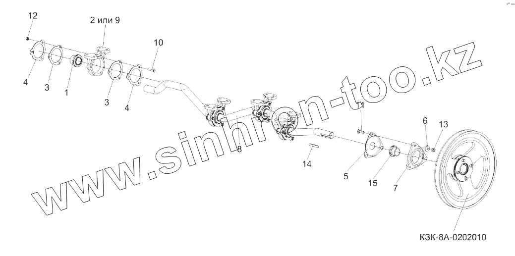 Каталог запасных частей к технике: Гомсельмаш KЗС-812. Вал коленчатый ведущий КЗК-8А-0212010