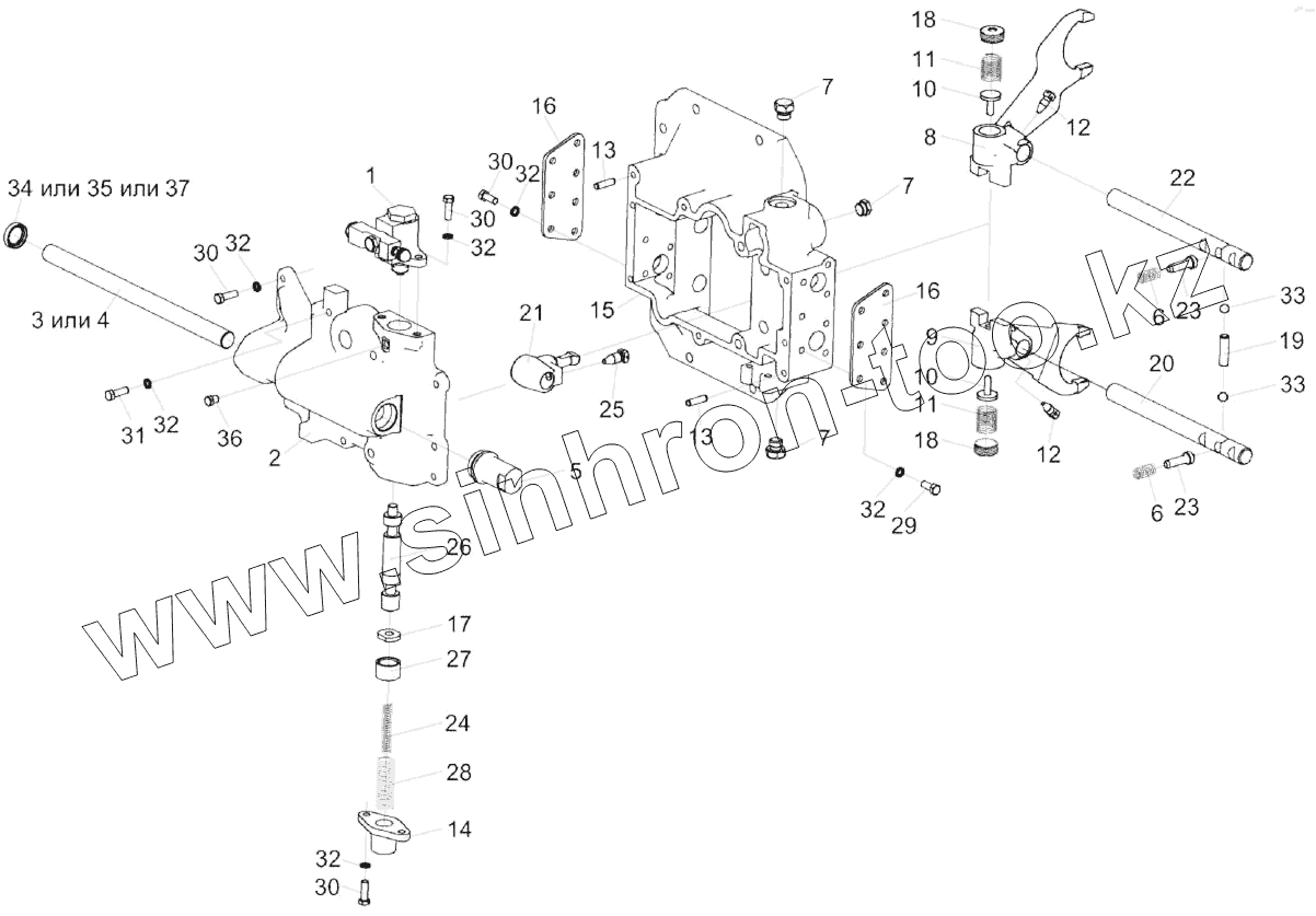 Каталог запасных частей к технике: Гомсельмаш KЗС-812. Механизм переключения передач КЗК-12-0107560