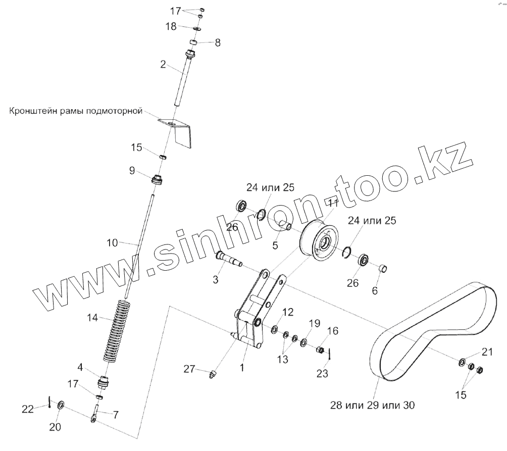 Каталог запасных частей к технике: Гомсельмаш KЗС-812. Привод гидронасоса КЗК-8А-2-0222500