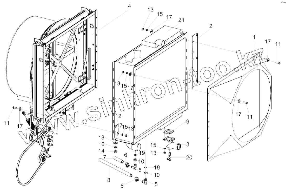 Каталог запасных частей к технике: Гомсельмаш KЗС-812. Радиатор КЗК-8-4-0106040Э